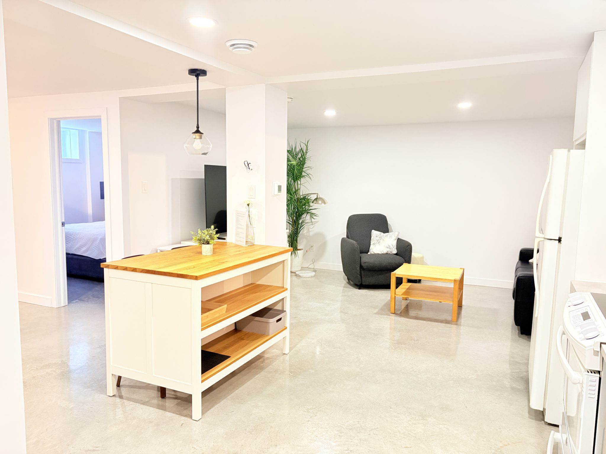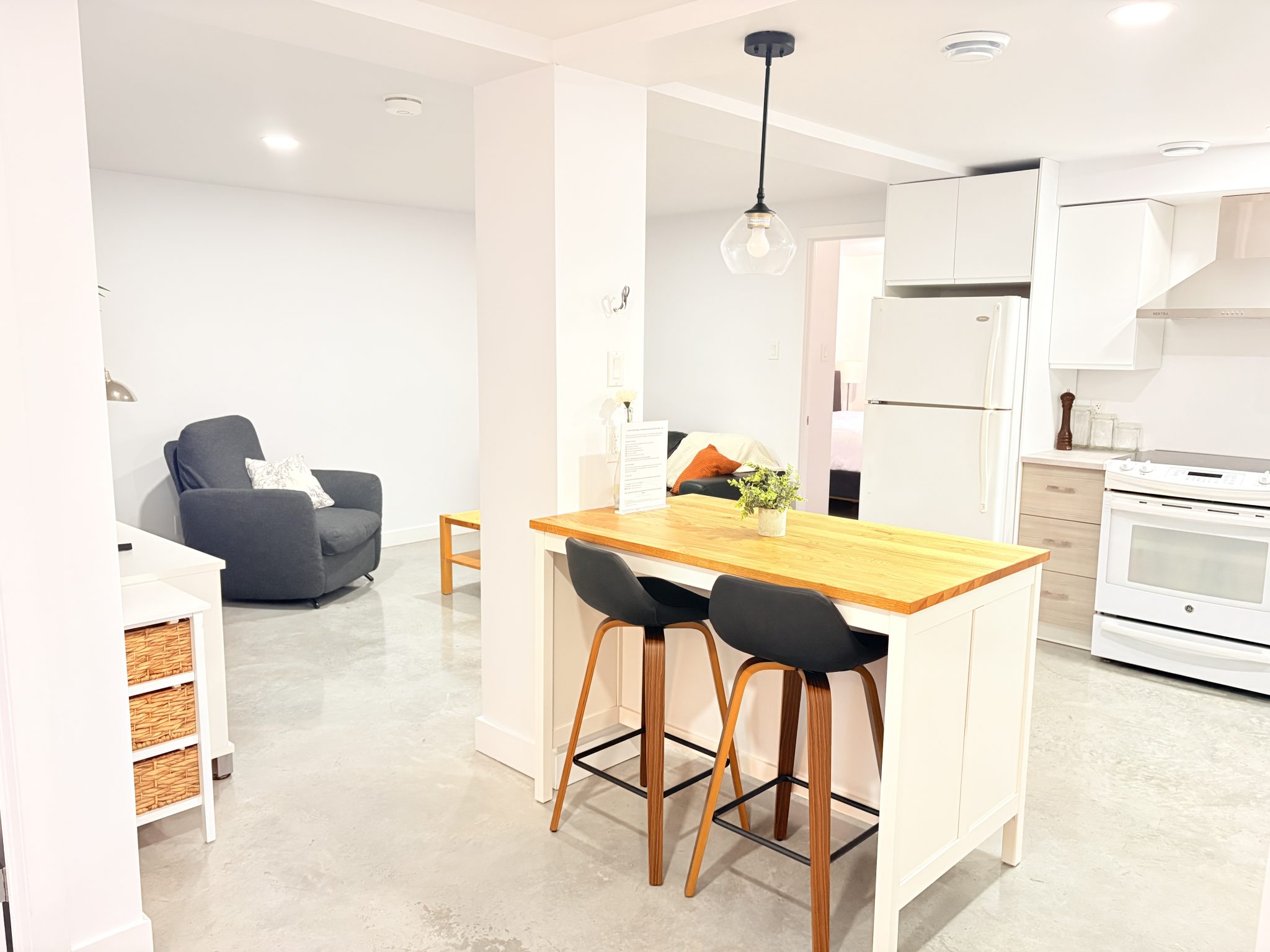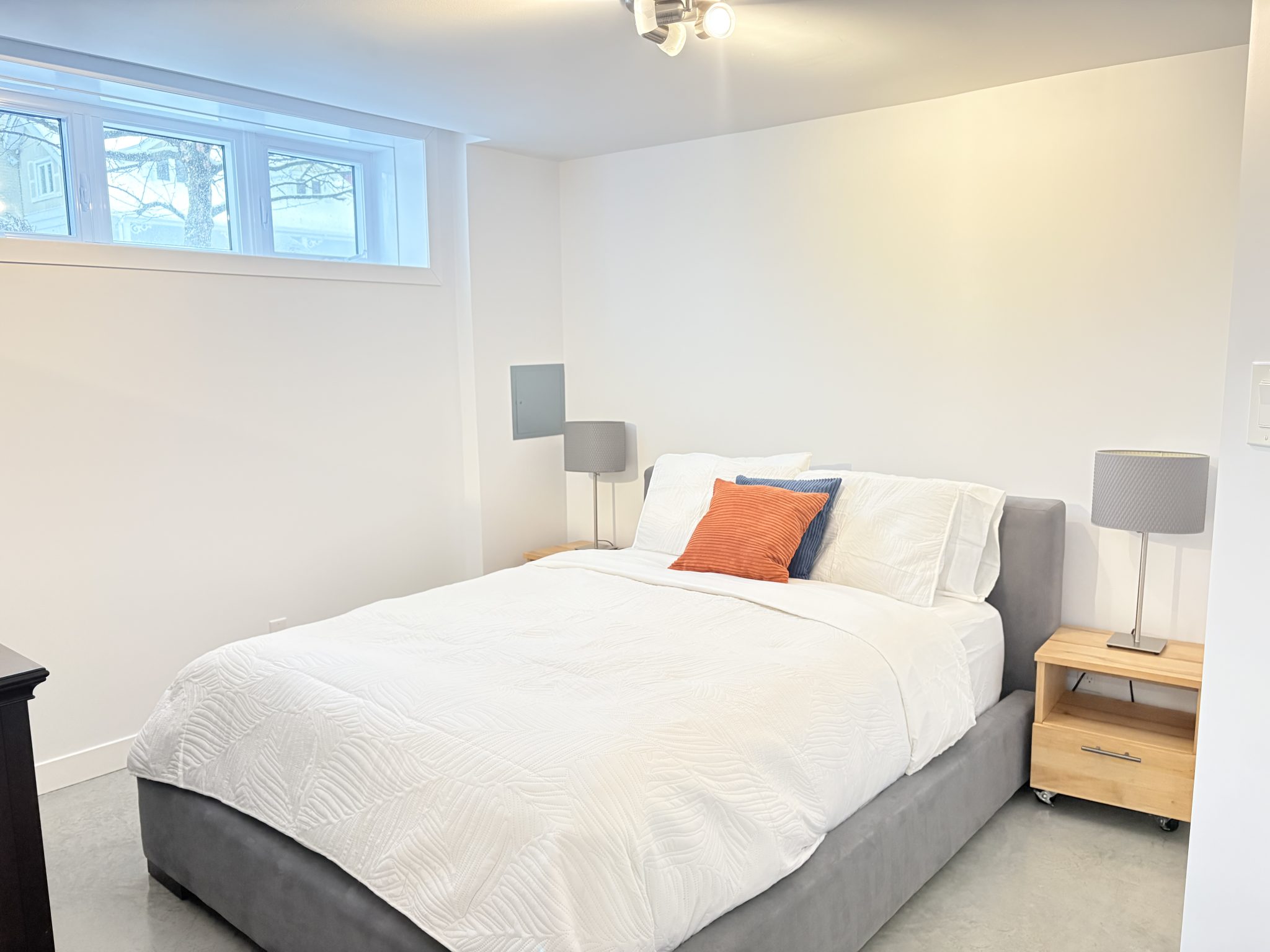 Lovely 2‑bedroom basement apartment, fully renovated with modern, high‑quality finishes. Located just steps from Saint‑Charles Ouest Street and all essential amenities, and only 5 minutes from Longueuil metro station, this unit offers both comfort and convenience. You will also enjoy a dedicated office area perfect for remote work, along with two reserved parking spaces. The newly renovated basement features 8‑foot ceilings, heated floors, and an air‑exchange system, ensuring a healthy and moisture‑free environment.